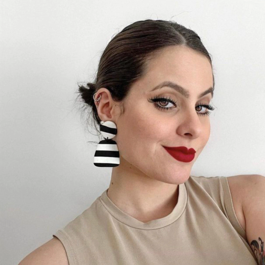 Feito em cerâmica plástica, leves e resistentes, com pinos em aço cirúrgico (hipoalergênico), e elos pretos.