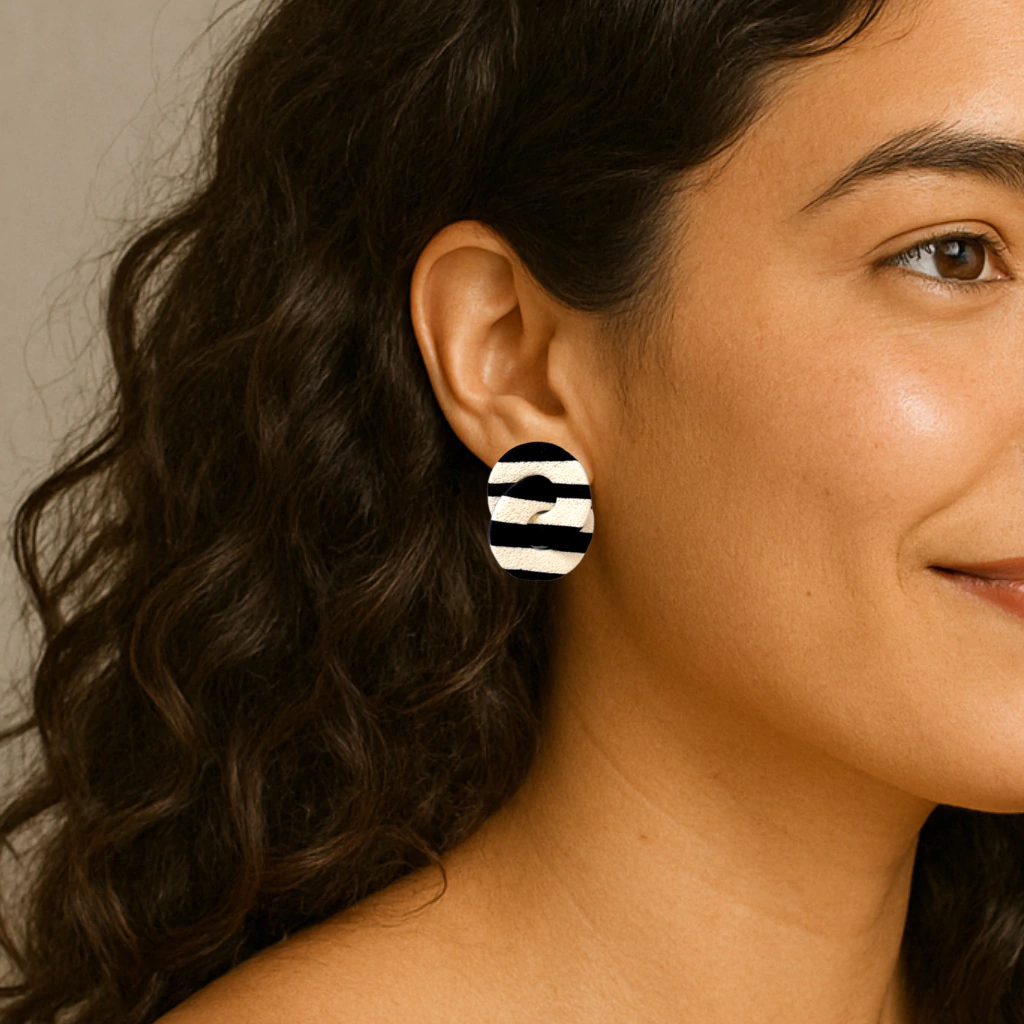 Feitos à mão, os brincos Francke são confeccionados em cerâmica plástica, um material super leve e resistente, perfeito para quem busca conforto sem abrir mão da elegância. Cada peça é produzida de forma artesanal, garantindo um design único e criativo que se destaca em qualquer ocasião.