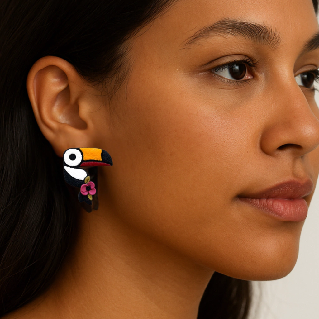 Adicione um toque de originalidade ao seu estilo com o nosso Brinco Tucano!