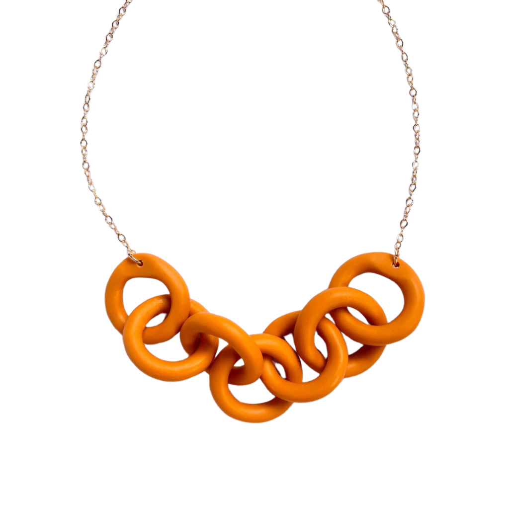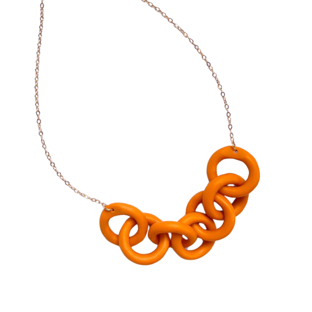 Feito em cerâmica plástica, leves e resistentes. A corrente é banhada com pigmento dourado idêntico ao ouro, de excelente qualidade, muito resistente e hipoalergênico.